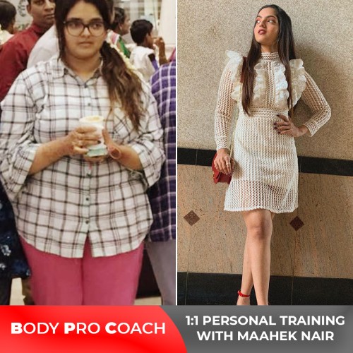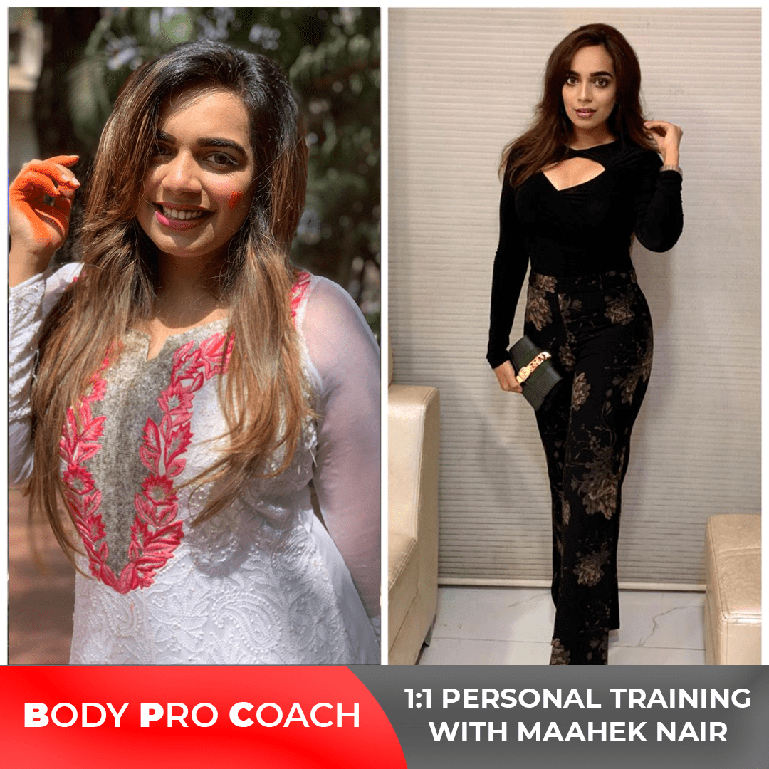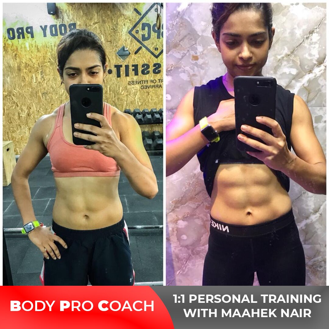 I just told her that I want to achieve a body shape which I was having 6 years back and really by god’s grace and because of Maahek recently after my 1:1 Online plan I have achieved my goals. My friends looked at me and they really said “Aashna we didn’t recognize you, you are looking like how you looked in your 11th & 12th” and I was like this is exactly where I wanted to be and I am here! Thank you so much BodyProCoach & Maahek Nair, I had an incredible journey I can’t wait to move forward with another advanced program to get better and to get even more fitter looking forward to be like Maahek because her energy is incredible and next level and am really trying to get there soon.