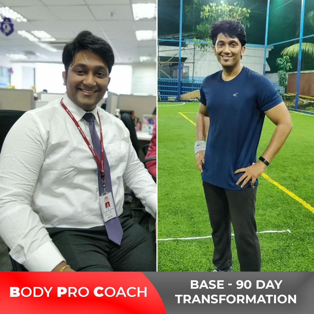 I am Musician, as i musician i work for long hours sitting in one place, at the same time because of work schedule my diet plan was always a big challenge, over a period of time i realize that i have gained too much, and it has started affecting my overall life so i decided to take up Base program by BodyProCoach and it has been a life changing experience. I did my exercise routine at home by watching real time videos by Praveen & Maahek Nair which are great options to do it anywhere and especially when you are travelling also, so i never missed my workout in the last few months.